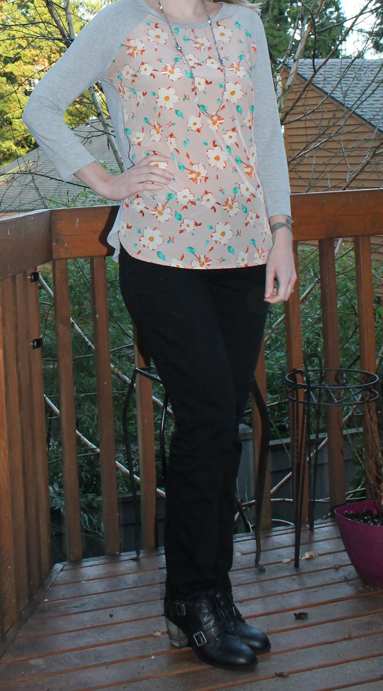 This sweater was in my last stitch fix, and I decided to wear it with a blush silk blouse underneath and skinny jeans and boots.  It was really comfortable but I don’t know how flattering it looked.