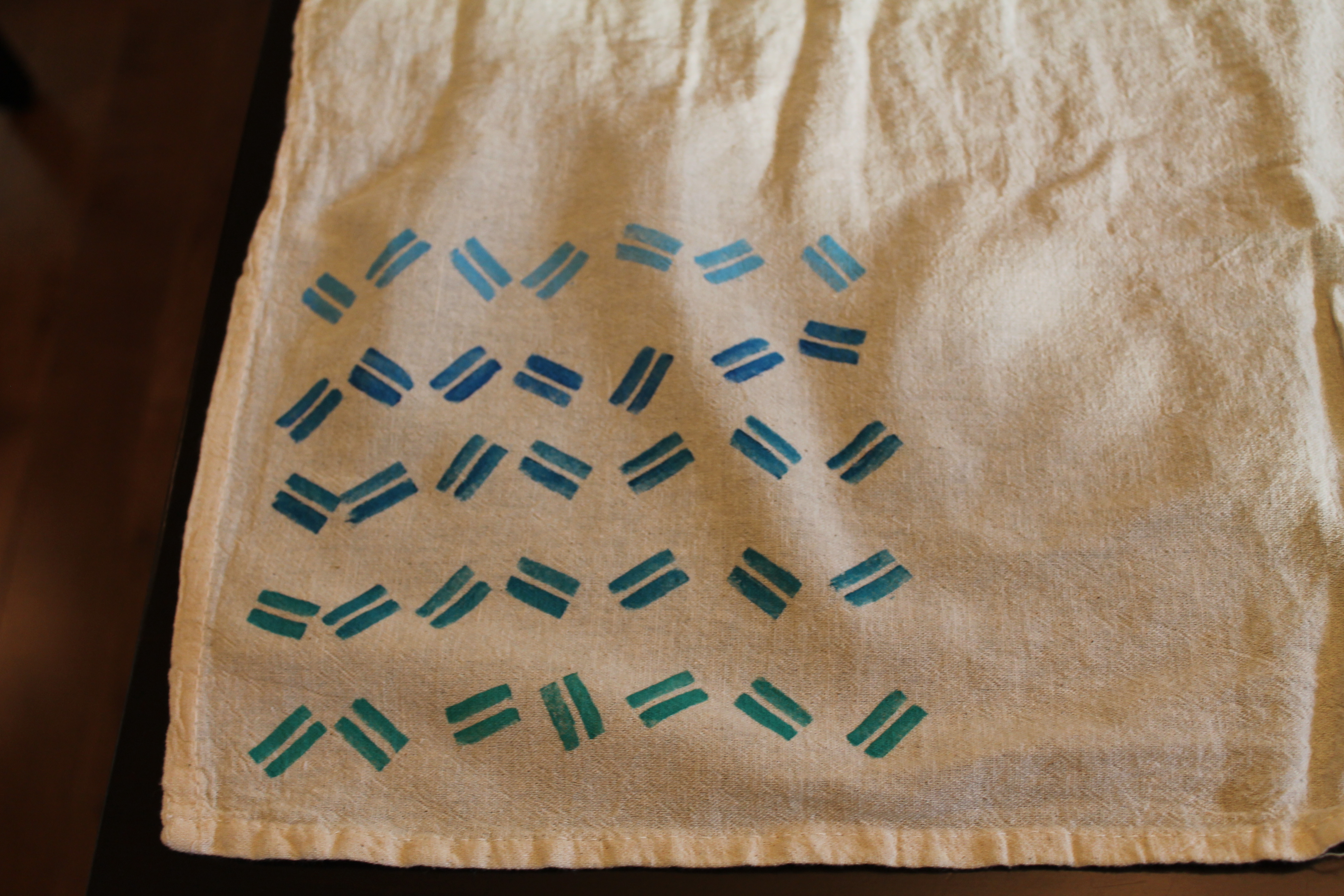 I was excited to see a bright salmon colored item, some yellow (hurray!!) and a green and blue patterned item. Not too exited about the grey.
