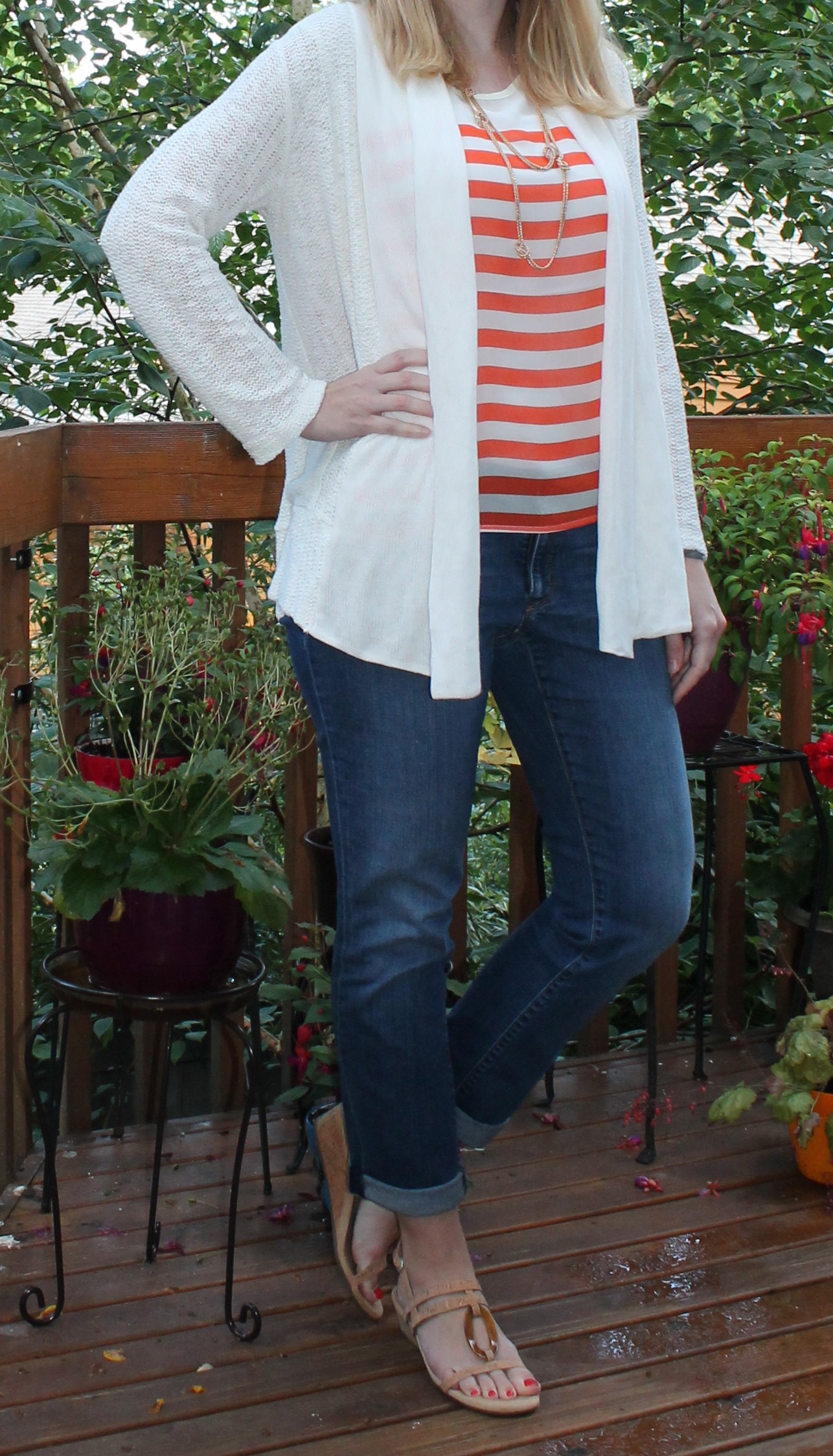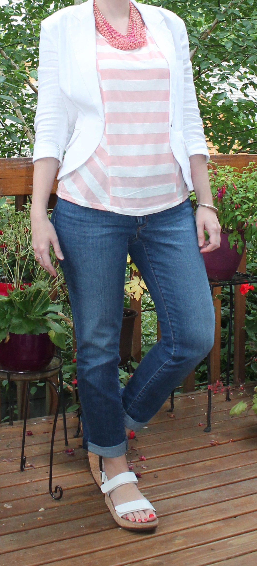 At last, something I might consider keeping. But $88??? It seemed really high for just one stretchy knit top. The cowl neck was really fussy, and I was right about to just return everything and take the $20 styling fee loss on this one until I tried it on with a white linen blazer. Suddenly I could see myself wearing this to a presentation at work and it seemed like it might be worth the extra $68 to keep it.