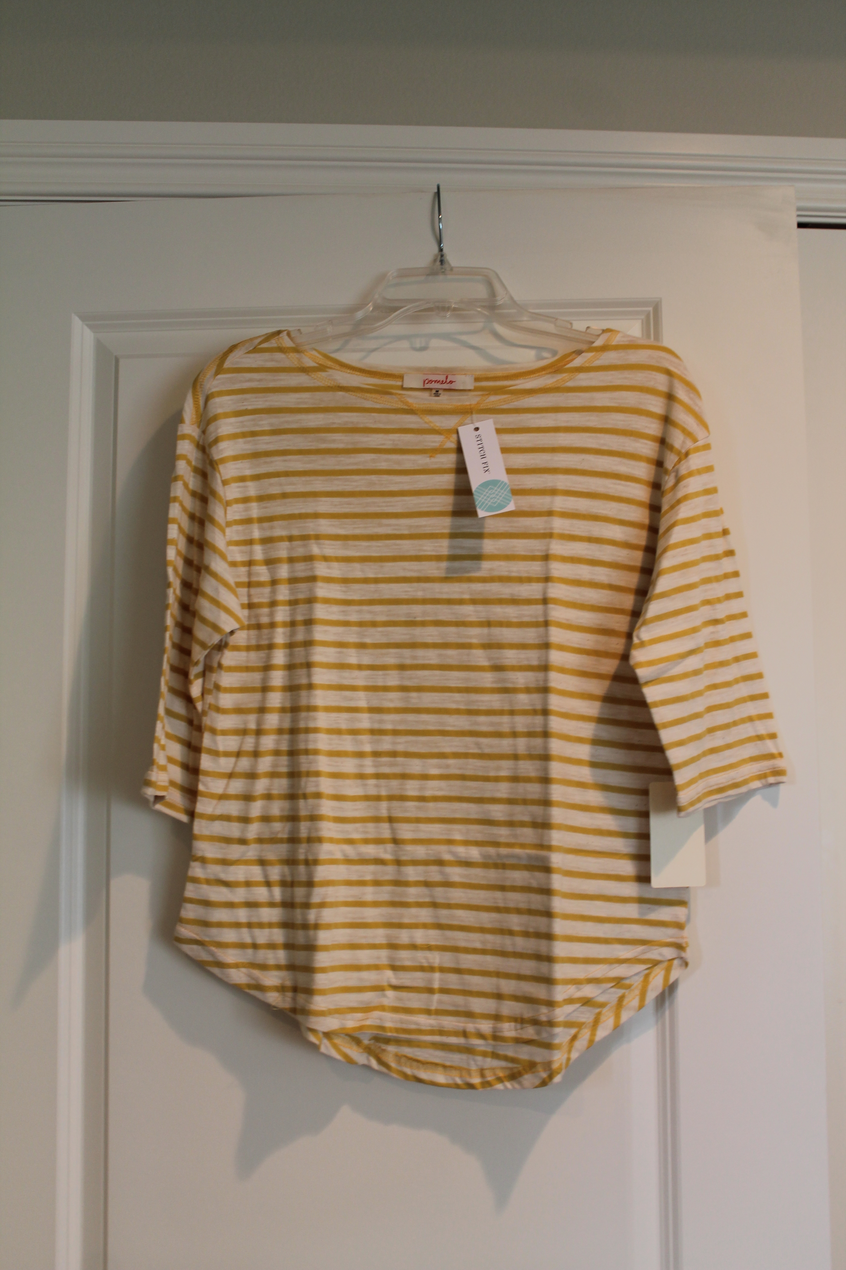 I had been asking for a yellow item since my very first fix (15 fixes ago now) and this is the first yellow item. I was excited for the color, and the fit was cute, but for some reason there were these little nubs in the fabric (hard to explain) that made it really itchy. I would only want to wear this on the weekends as a casual top but the fabric would make me pass it up in the closet. So unfortunately this cute little top is also going back.