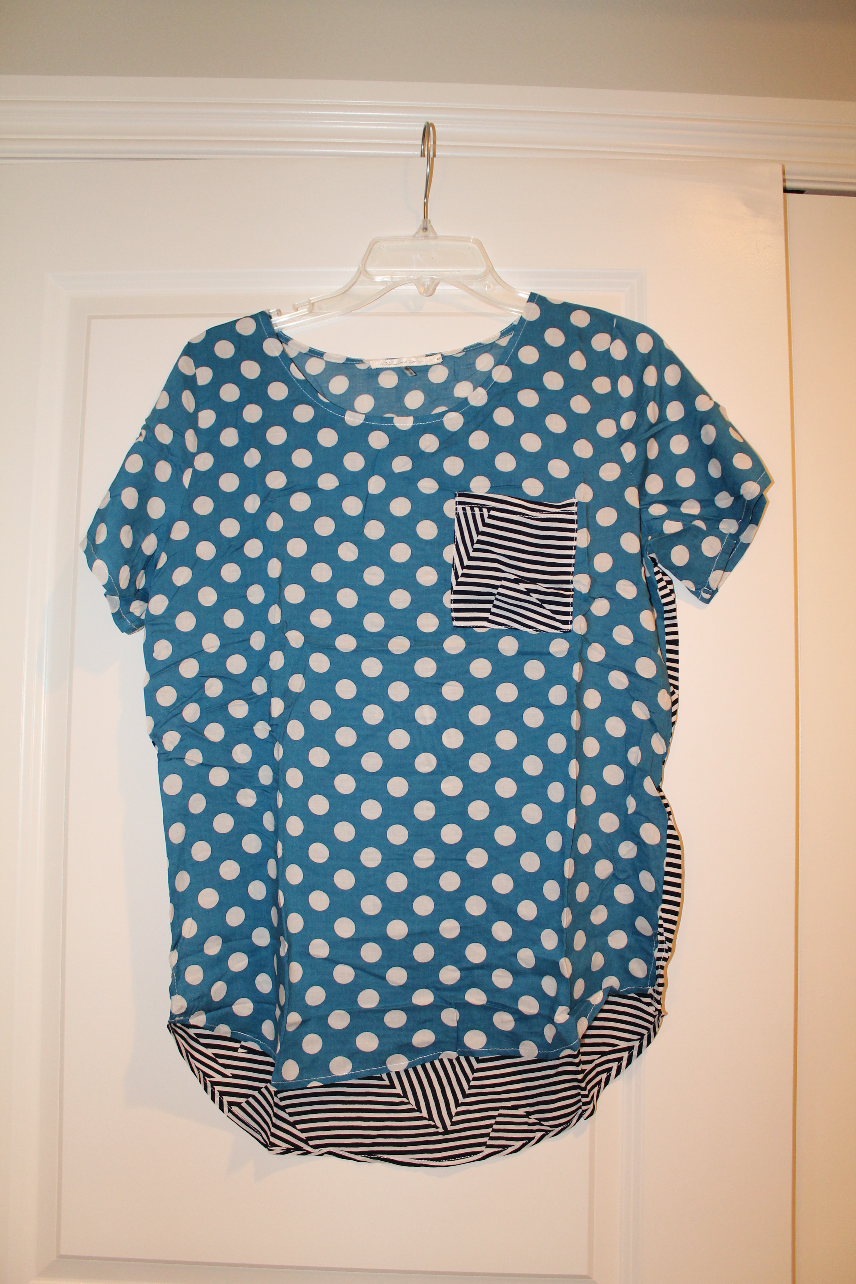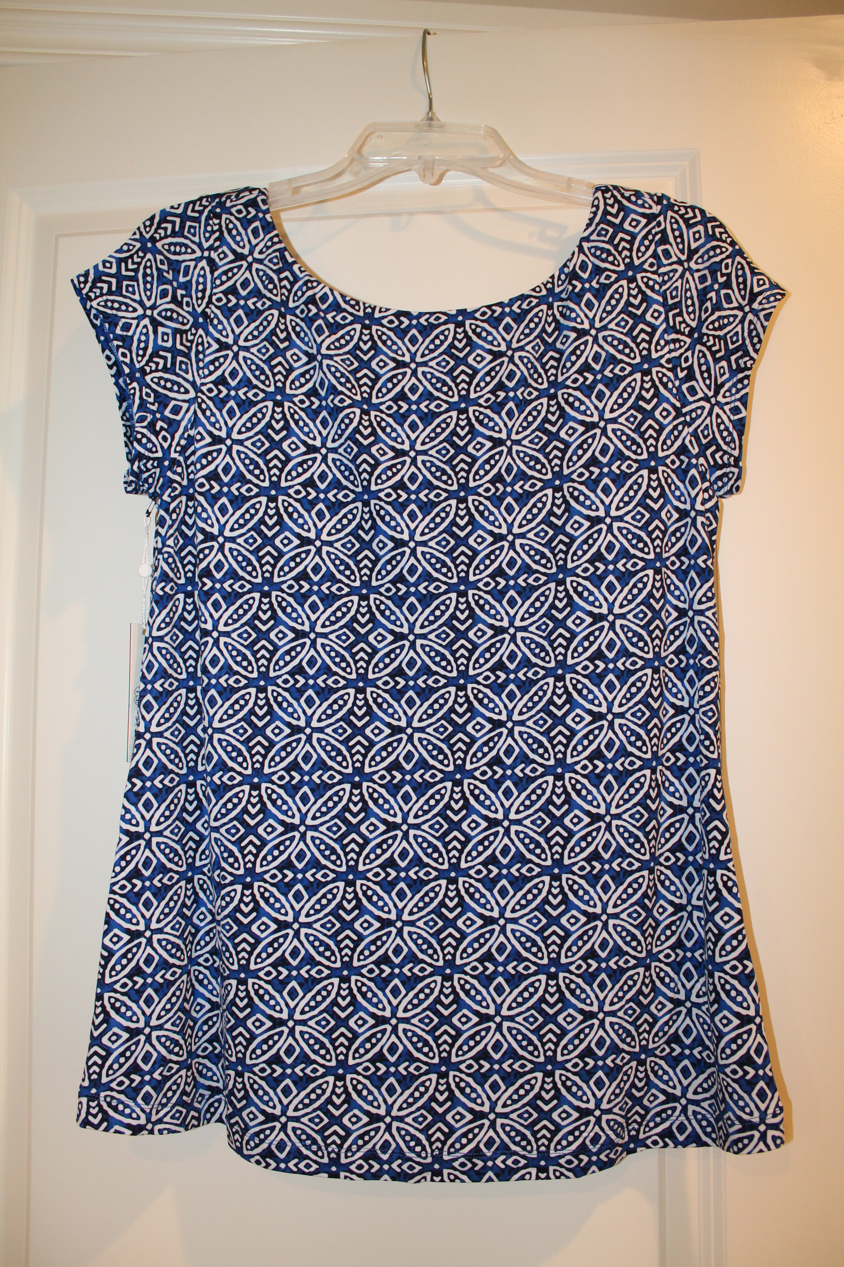 This was a uniquely patterned top and despite the fact that it was black and white (and I had said no black and no blue on my profile) I like the pattern and cut, plus the price was right on this one, so I am keeping it.