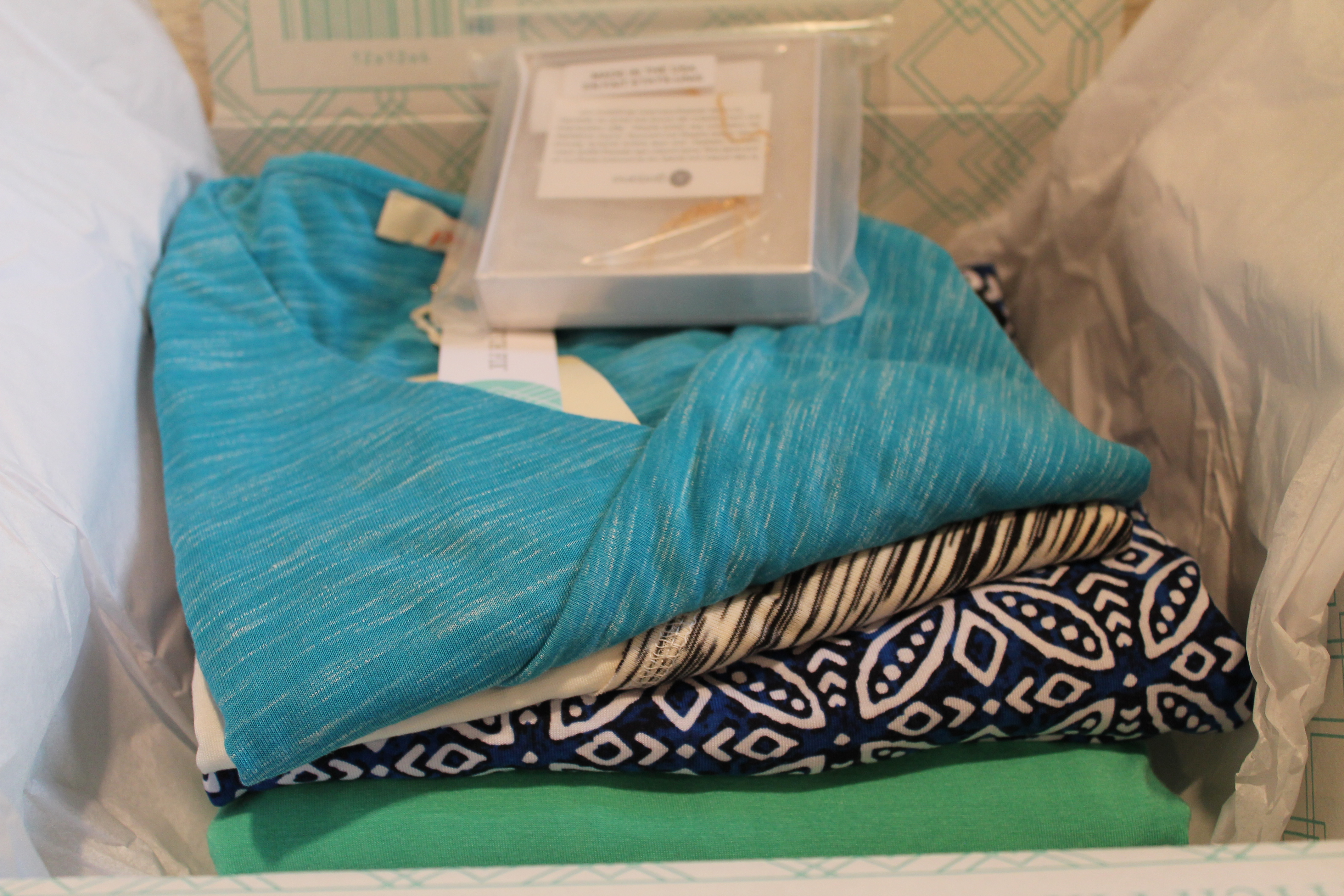 I see that my stylist did not look at my comments at all this time. I had asked for a lightweight summer jacket, maybe some bottoms, no more tank tops, and had specifically said no black or blue. I’m hoping that she reads the comments for August, but won’t hold my breath. Despite that, I ended up with two cute tops and a necklace that I like, so overall I’m pretty pleased. I still adore Stitch Fix despite the last few misses.