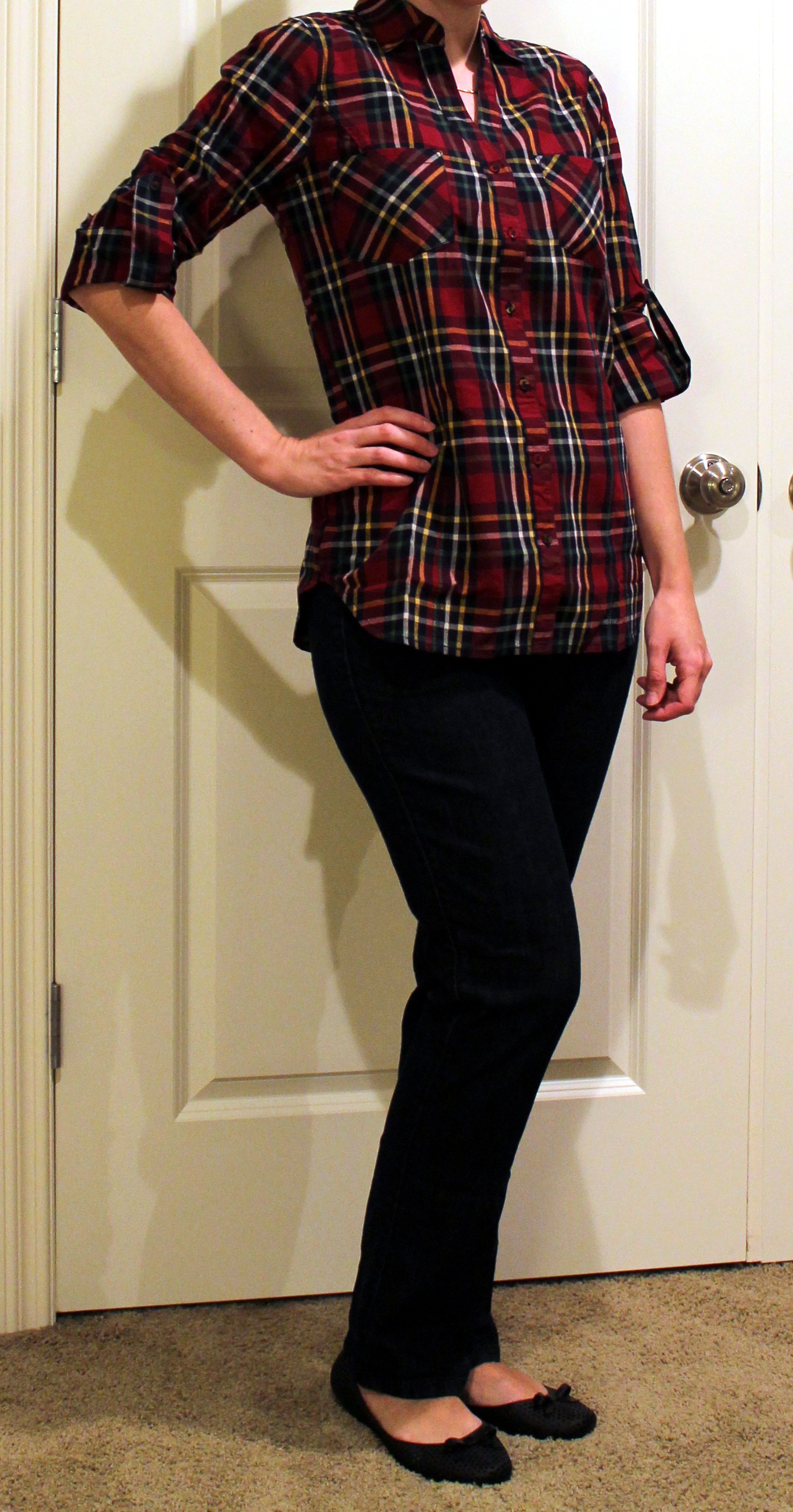 For some reason I was expecting this one to be flannel (didn’t read the description) but it’s actually just a cotton plaid shirt. I like the roll sleeves and it’s got a nice slim cut to it. I’ve seen some ideas for how to wear it on pinterest (black jeans, jean jacket) so I’ll be sure to wear it soon.