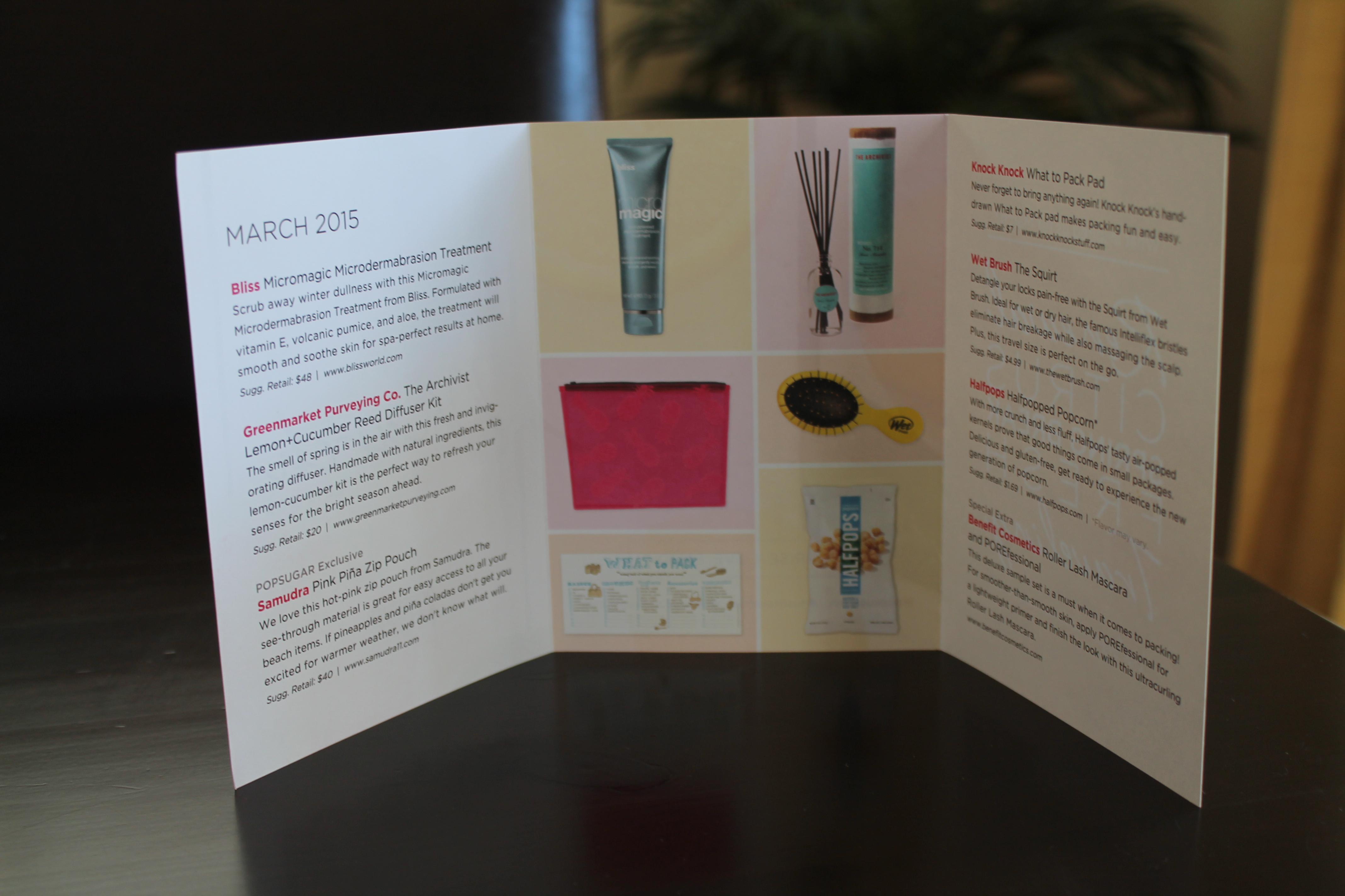 The March PopSugar Must have box has arrived. The theme this time was a vacation or getaway which I just came back from. 🙂