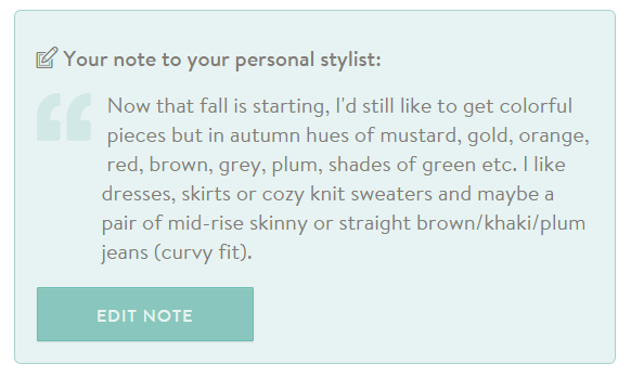 My September stitch fix arrived yesterday, and once again I’m disappointed. Here was the note to my stylist.