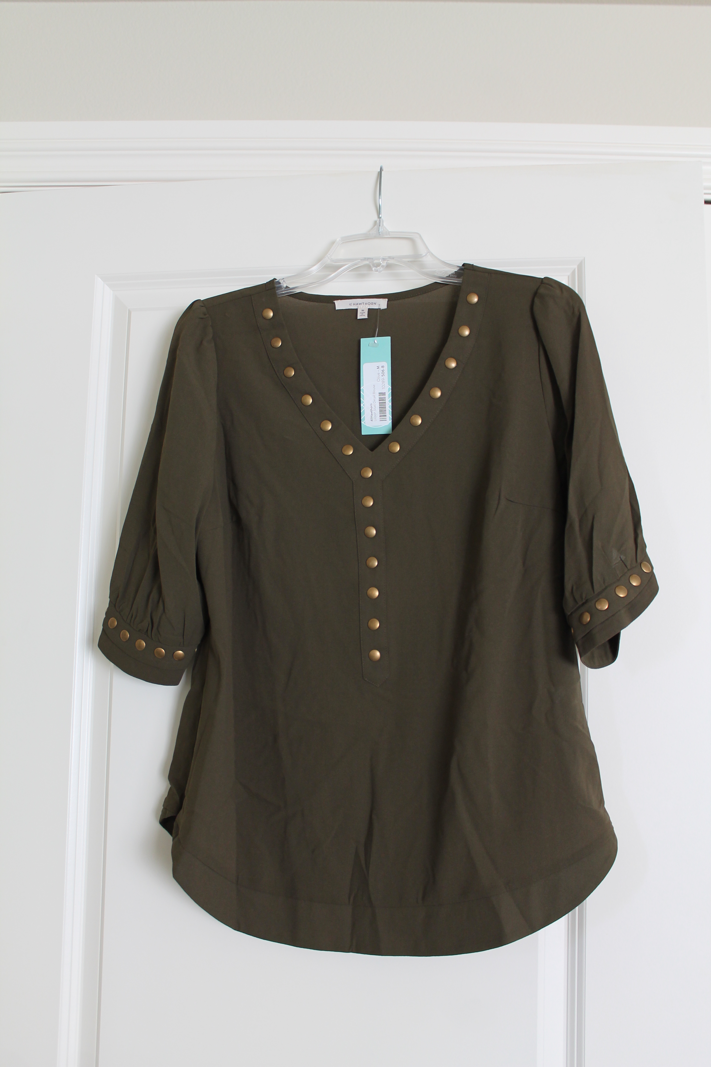 Yes it’s an olive color, but the fabric feels itchy and artificial and I didn’t really ask for a blouse. I don’t see myself wearing this because of the itchy fabric.