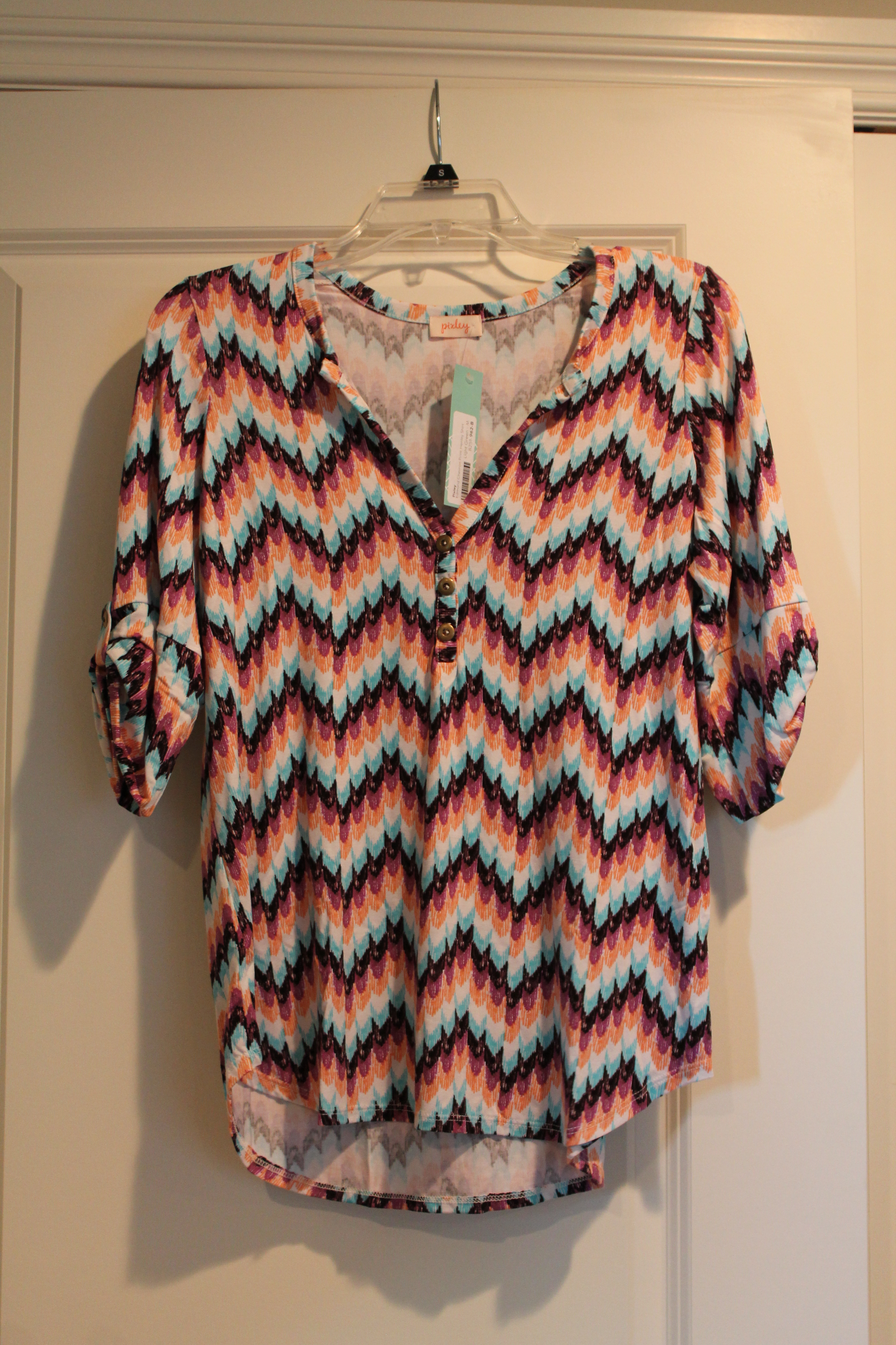 The shape was okay and the pattern was cute, but it was a thick polyester un-breathable fabric and I couldn’t bend my arms comfortably because there was no stretch. For someone who is on a keyboard all day at work this was a no go.