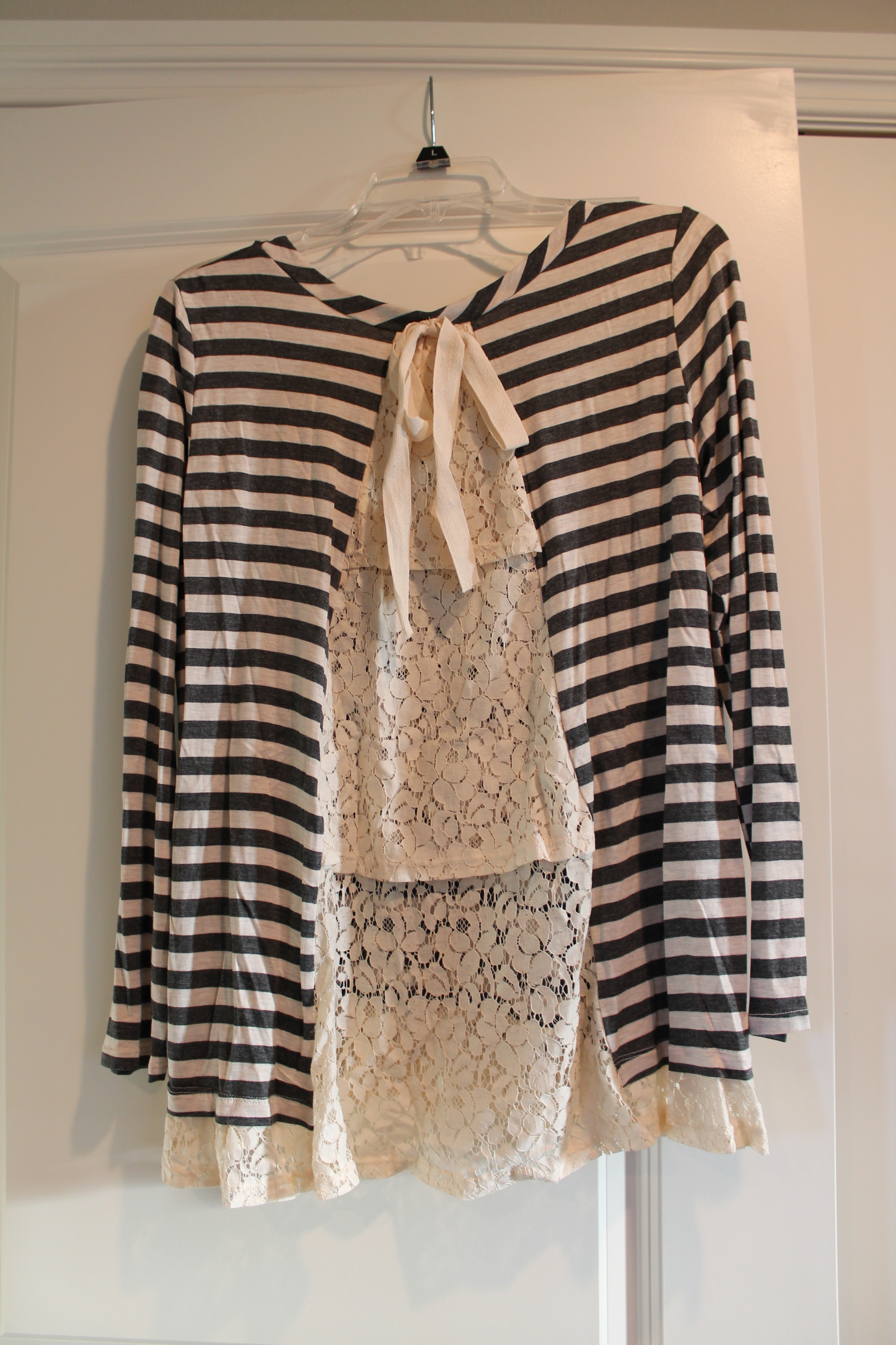 This one is quite big on me and a size larger than I would normally order. Β I’m not sure why they sent this in a Large? Β If it was more fitted it would be pretty cute. Β The neck is super wide and it’s really long.