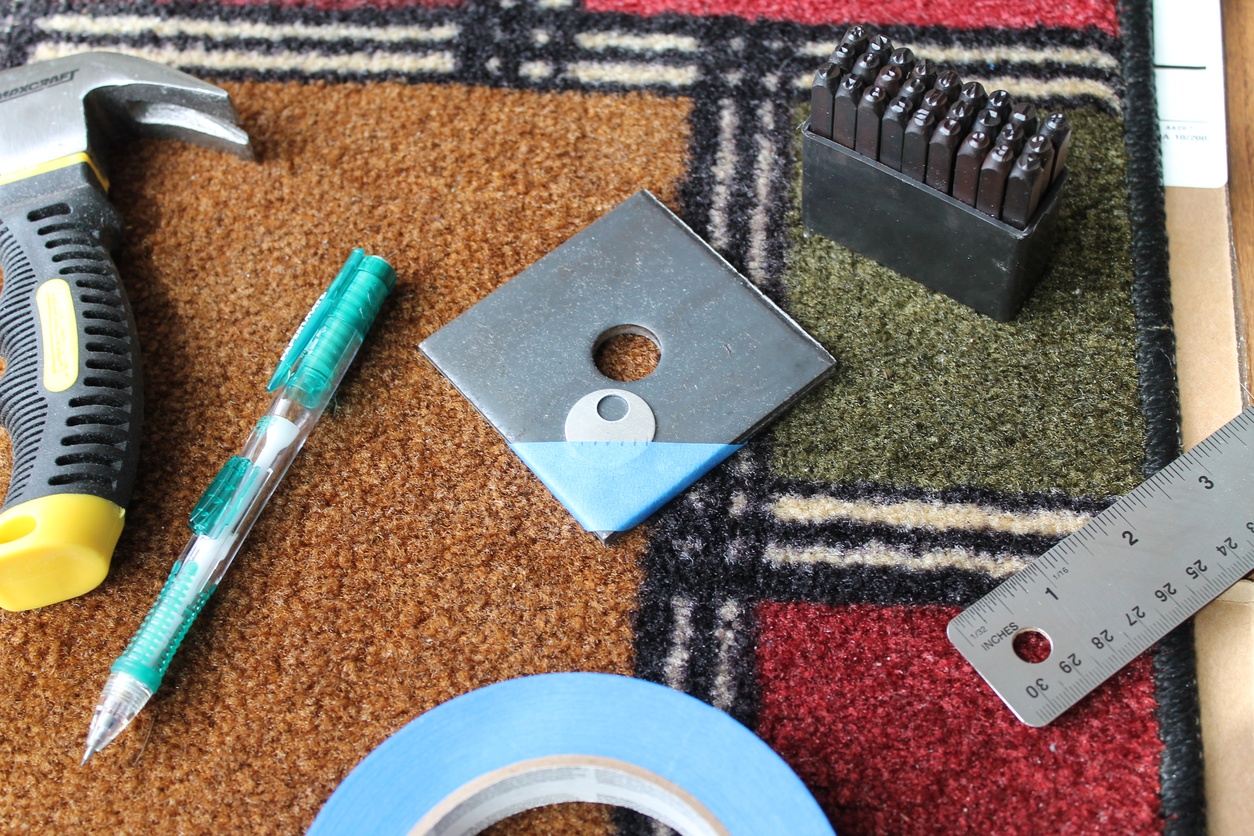 The other painting project were these wall pegs. I made these using blue painters tape to form the lines.