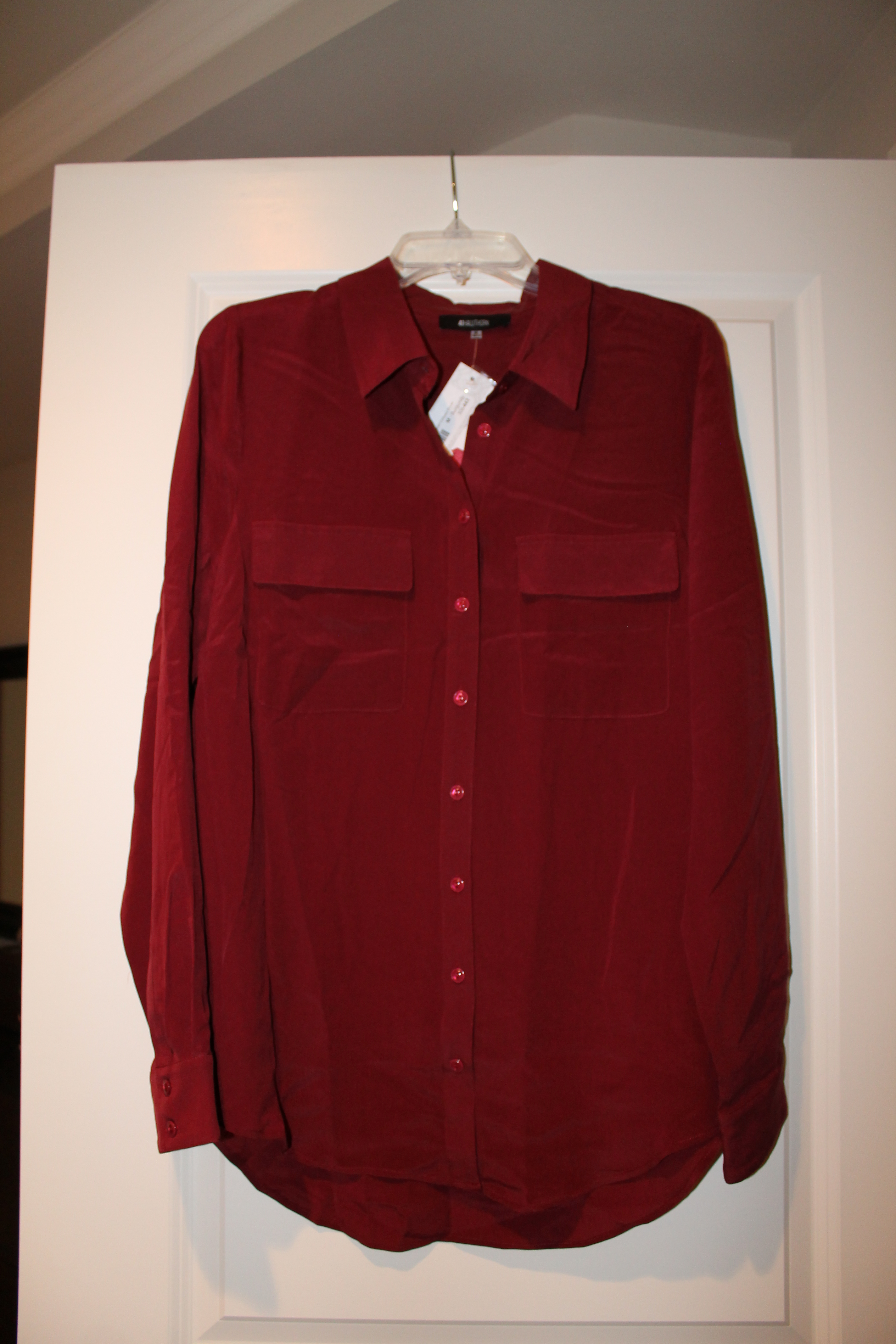 I had actually been wanting some tops in burgundy to compliment my fall wardrobe, but this one is on the expensive side and was super long with really long arms.  I’m not sure if it was supposed to fit that way or if it was too big, but I liked the softness of the silk and the color was nice so I’ll be keeping it.