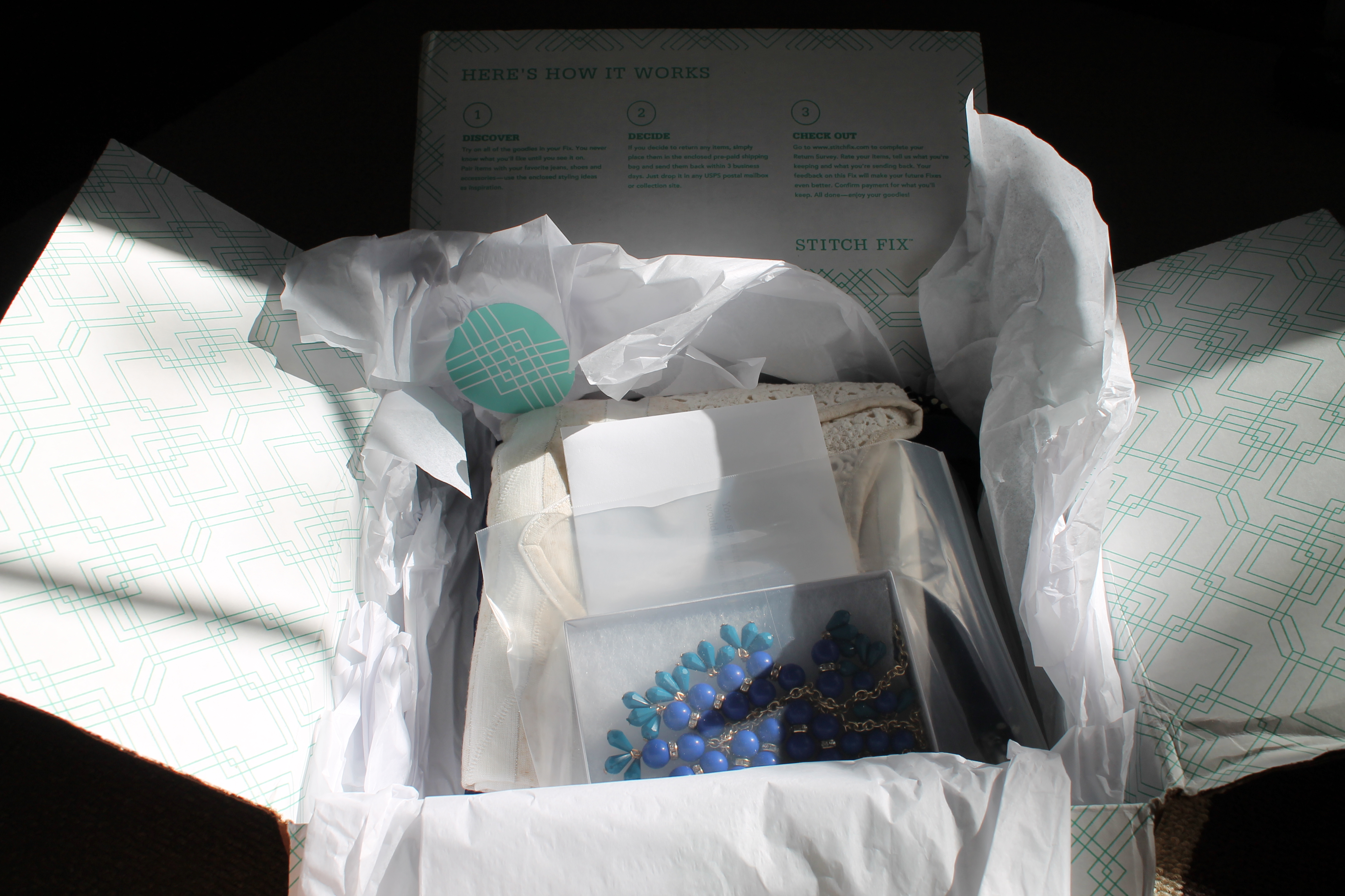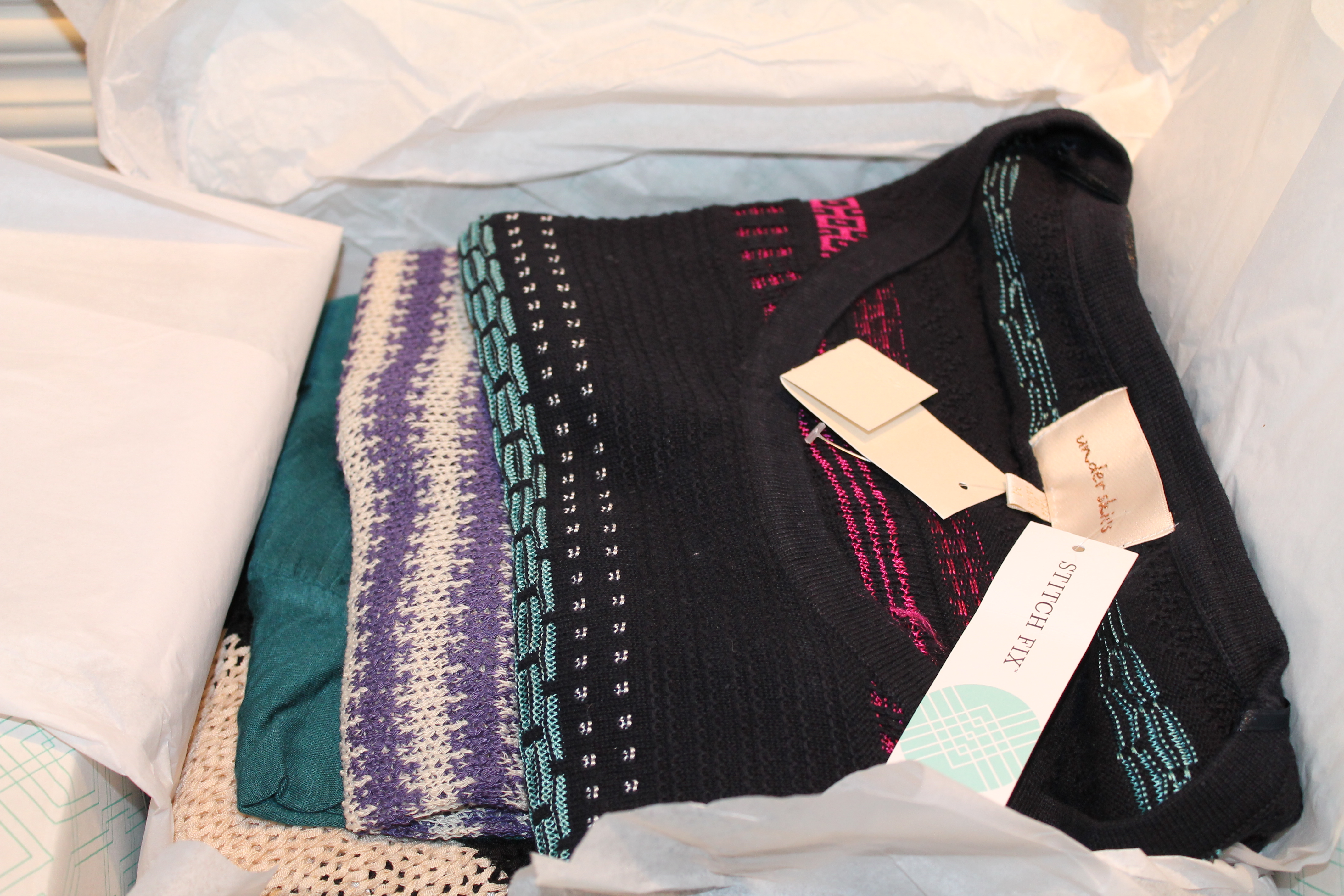 This afternoon we were pulling away from the house to go grab some lunch, and what did I see on my porch? A stitch fix box!! Apparently the one that was packed on 2/5 somehow magically made it’s way to my house. I eagerly opened it up to see what was inside, and while I wasn’t thrilled with what I saw, I ended up liking most of it. Here’s my February Fix.
