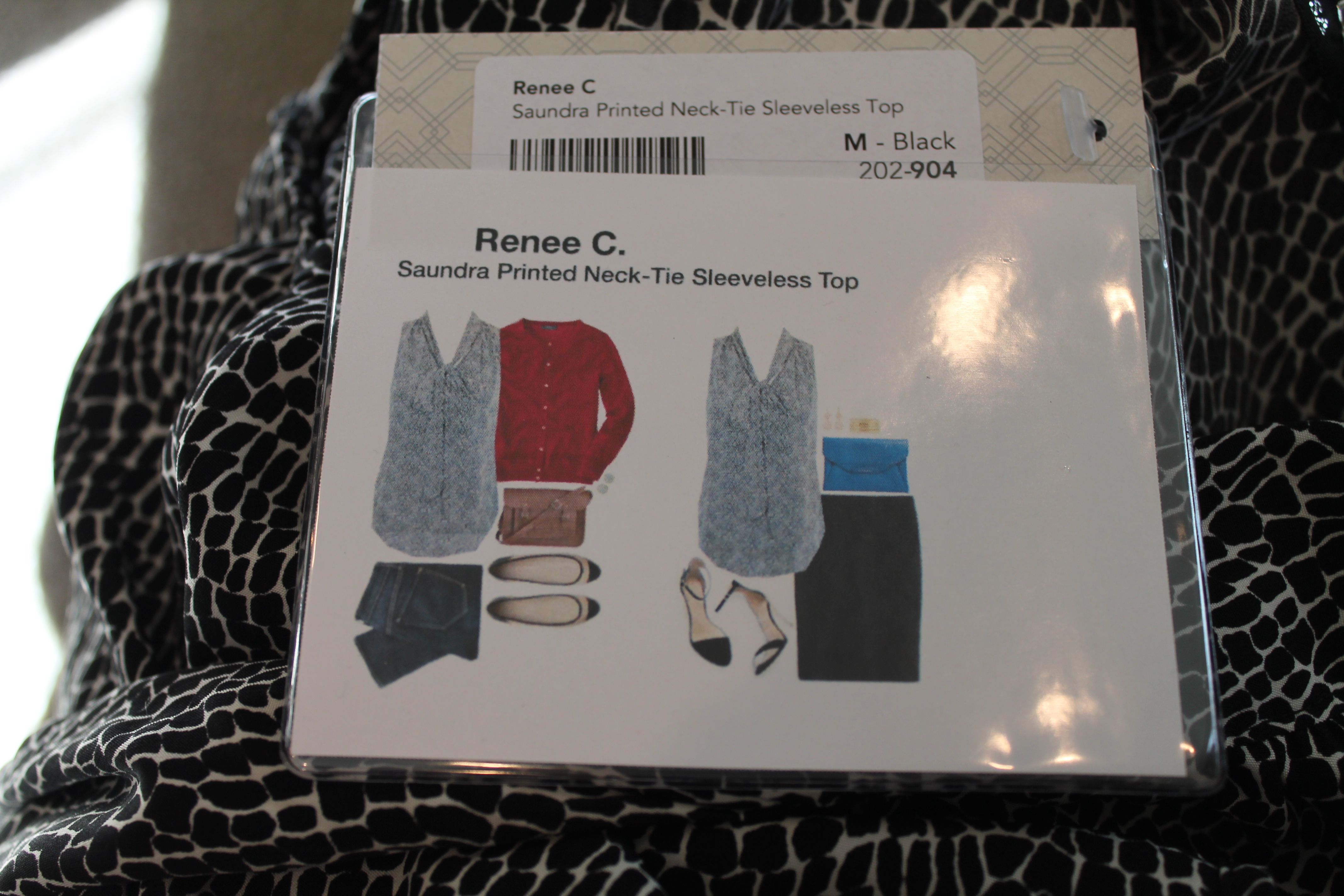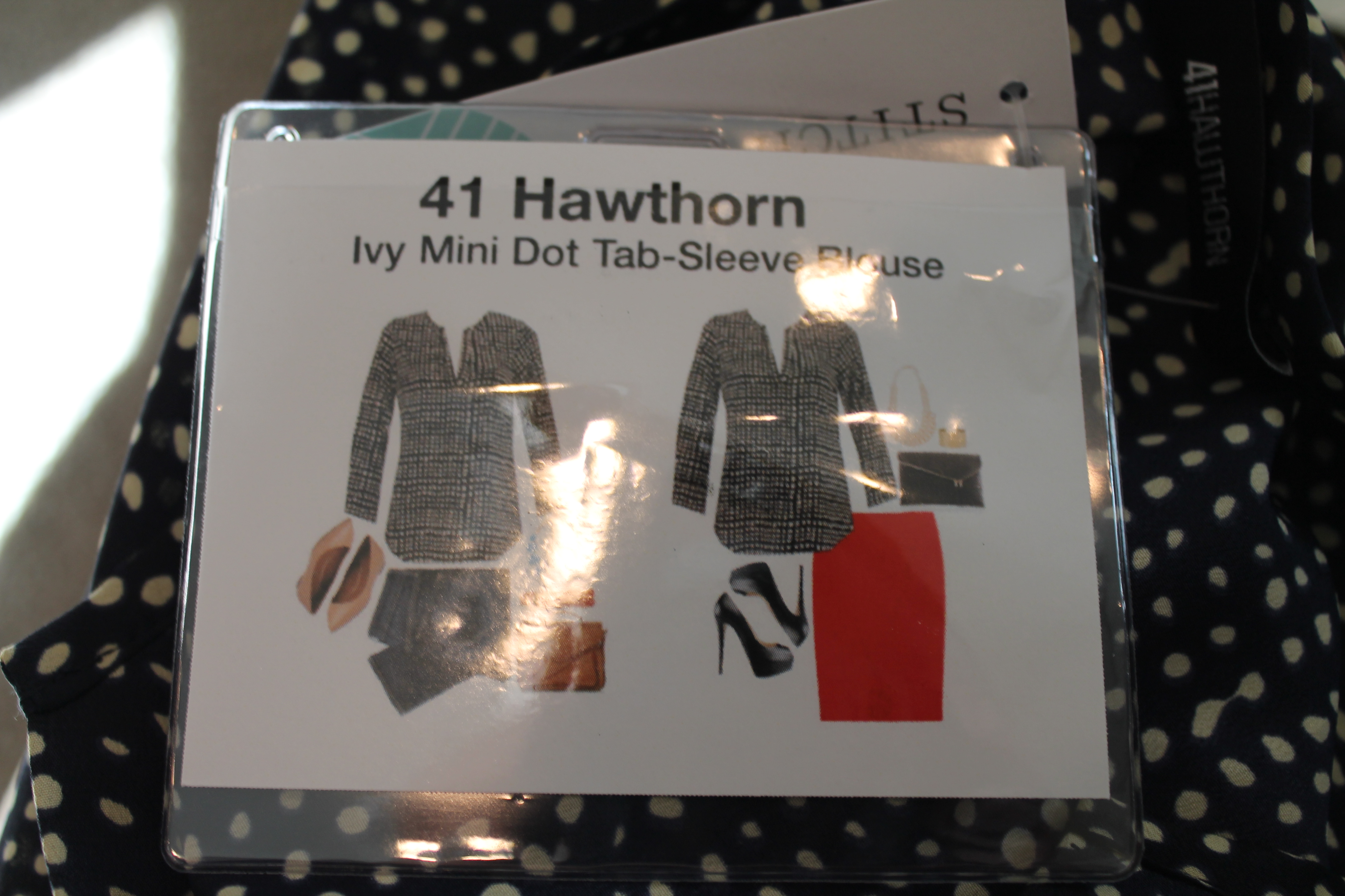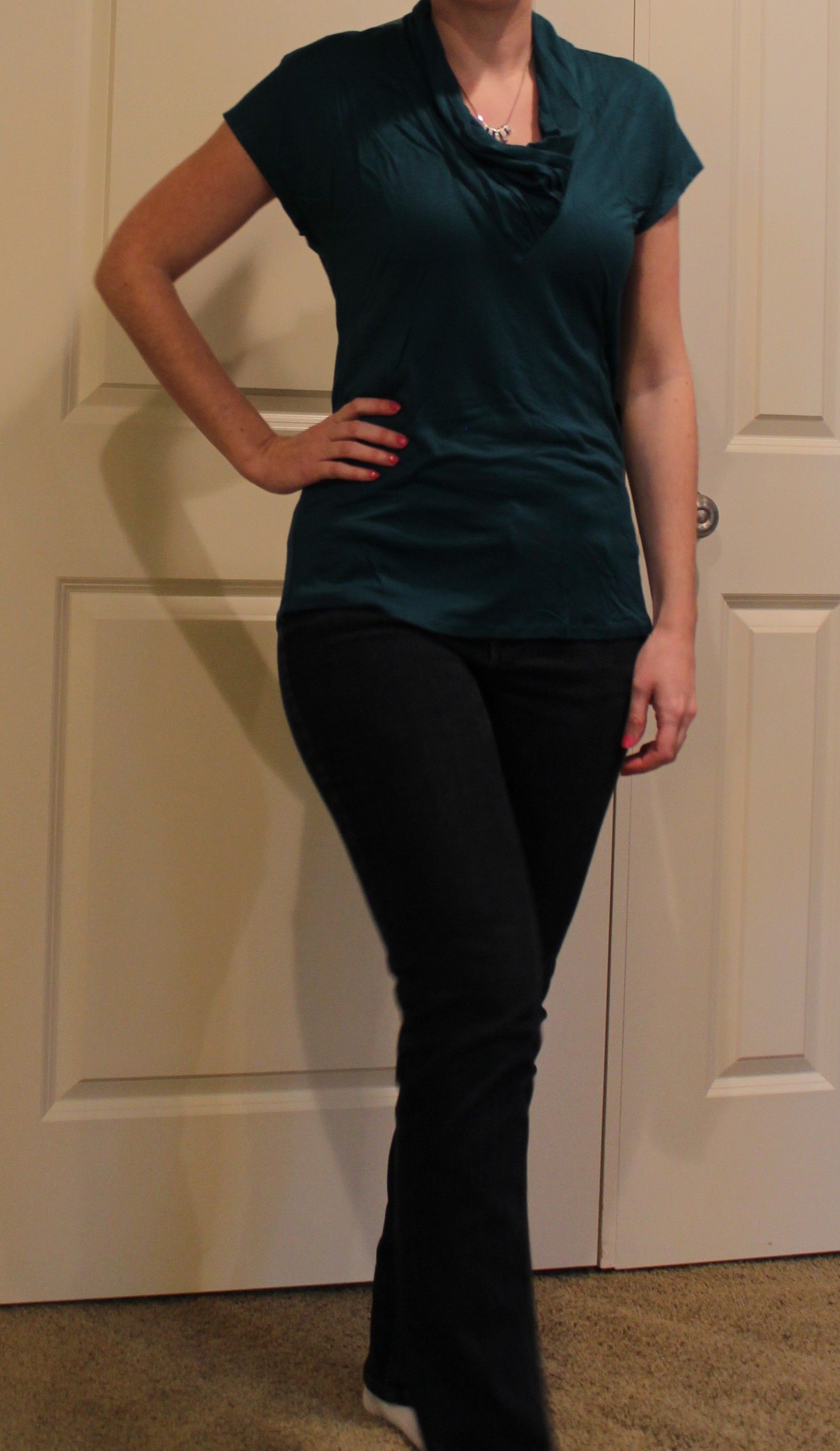By itself I don’t love this top. The scoop goes pretty low in the front and the back has a really open neck too which makes me feel cold. Since it is a nice light layer though with soft fabric I paired it with a military style jacket like the card suggested and it makes a great layering piece. Also looks cute with the necklace.